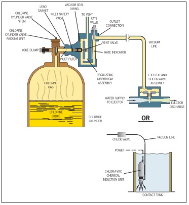 * Khi ống châm vào đường ống có áp suất cao (3-4kg/cm2) chúng ta nên dùng thêm bộ van con cóc (Corporation cock), các ống dẩn dung dịch Clo ở đằng sau Ejector không nên dùng ống kim loại